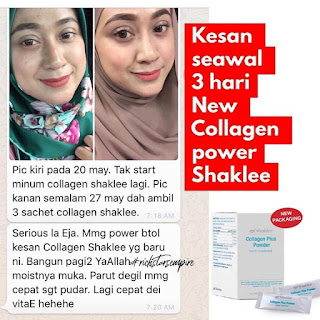 Berikut merupakan testimoni pengguna yang berpuas hati dengan collagen powder shaklee